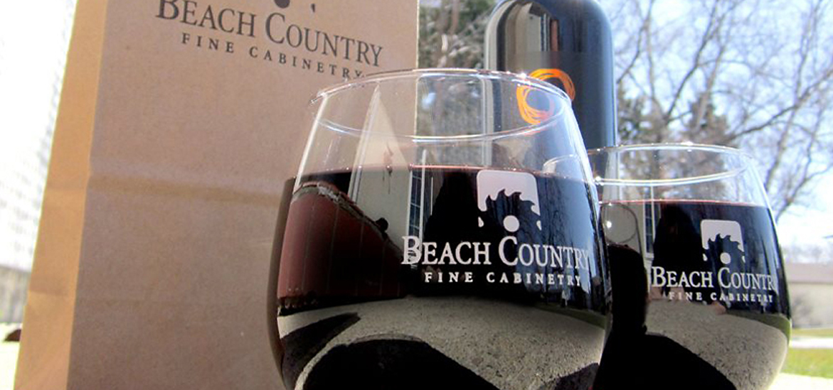 Beach Country Cabinets got us to develop a 'thank you' promotion for their clients. After every renovation project, this wine promo is left on the client's new kitchen counters.