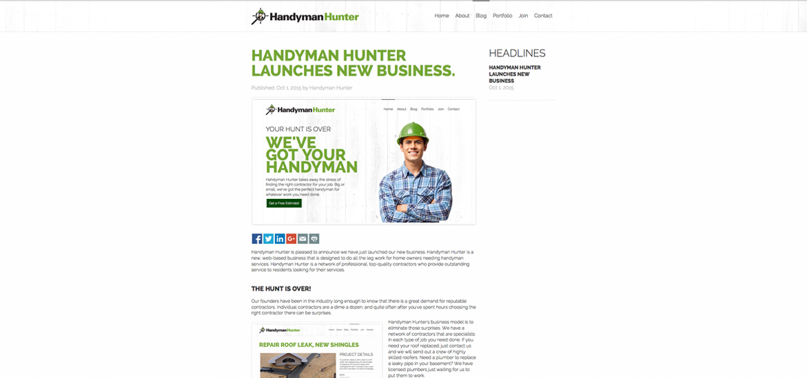 We are pleased to announce we have just launched a new website for Handyman Hunter - an online network of contractors that are looking to revolutionize the handyman industry.